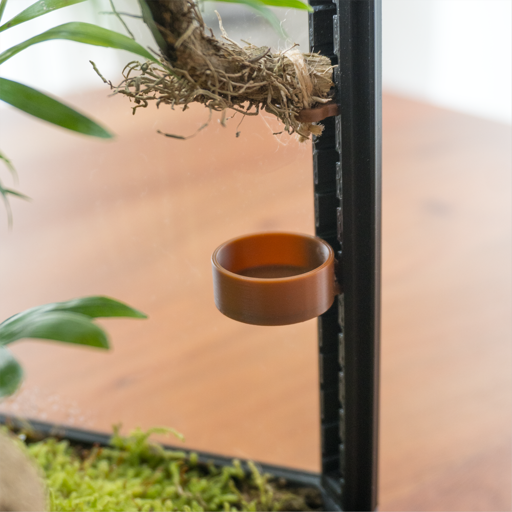 This bowl, specifically designed for the BioFaunaCube, provides an ideal and hygienic feeding station for your jumping spiders. Thanks to its thoughtful design, it mounts easily to the BioFaunaCube post, ensuring a secure, space-saving integration into your terrarium setup.